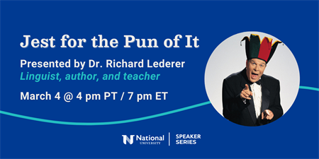 San Diego Union-Tribune language columnist and International Punster of the Year Richard Lederer will explain what a pun is and will perform some of the funniest puns ever created. Attendees are encouraged to share their favorite pun during this NU Speaker Series webinar.